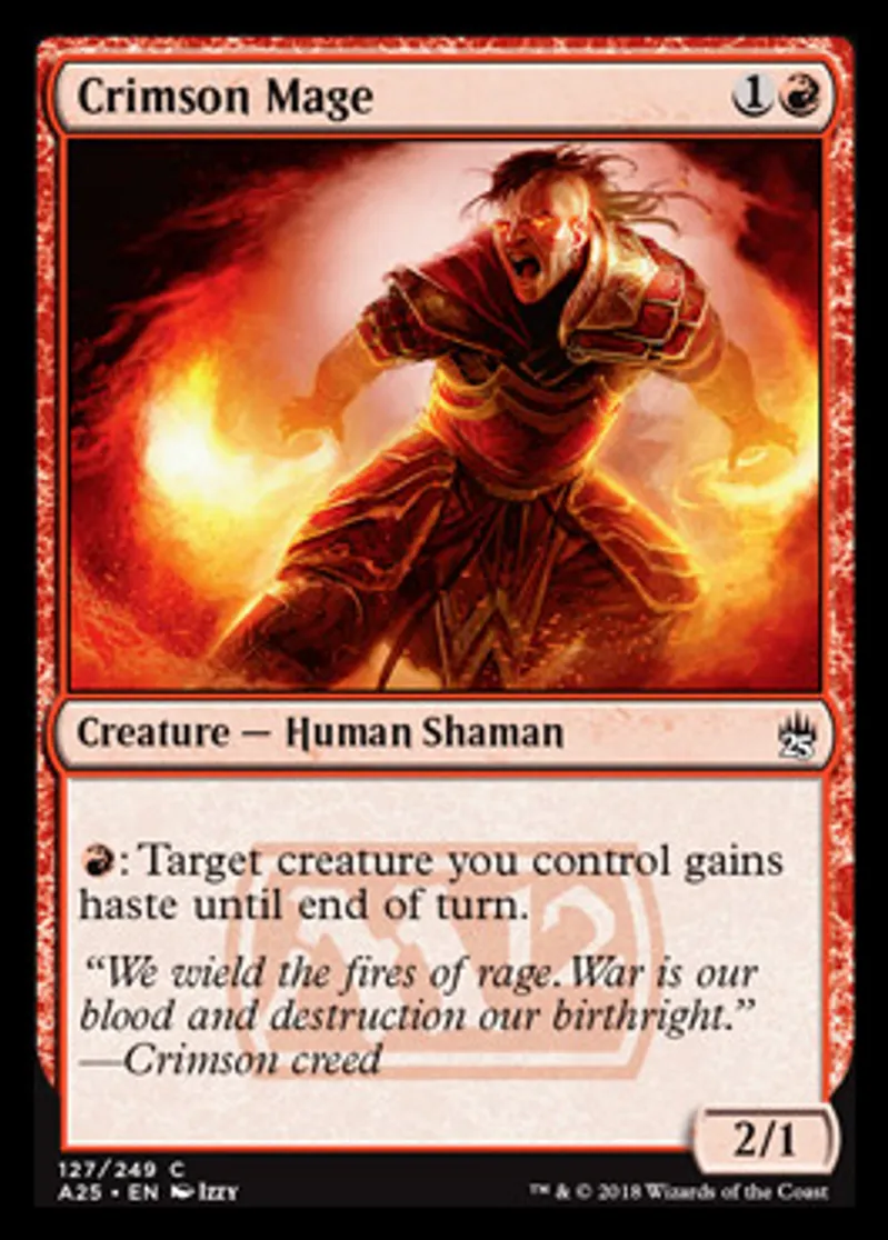Magic: the Gathering (mtg) Common Creature - Human Shaman Crimson Mage from Masters 25 (A25) last updated 2026-02-21 16:50:02