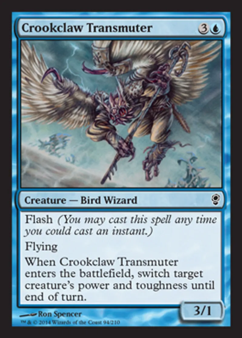 | Oracle Text | Flash (You may cast this spell any time you could cast an instant.) Flying When Crookclaw Transmuter enters the battlefield, switch target creature's power and toughness until end of turn. | ||