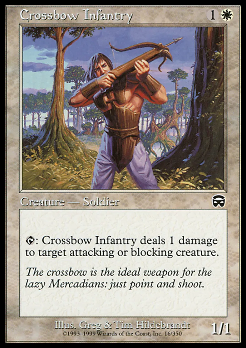 Crossbow Infantry is a Common in the set Mercadian Masques.