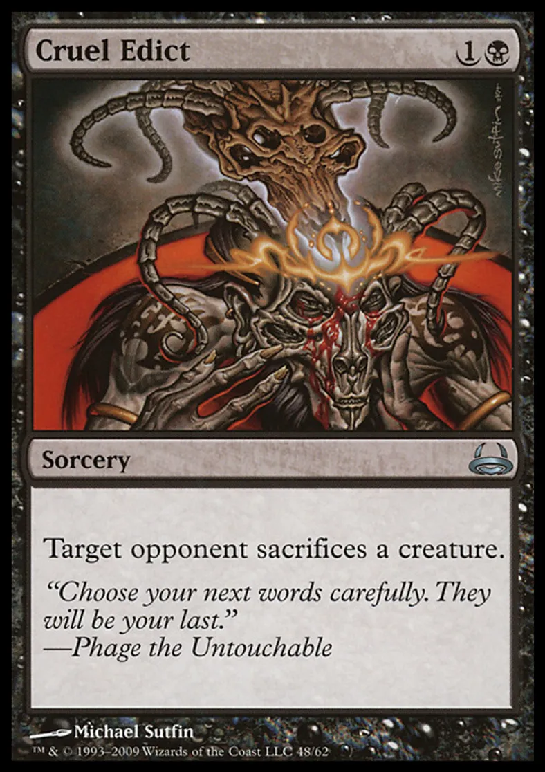 Magic: the Gathering (mtg) Uncommon Sorcery Cruel Edict from Duel Decks: Divine vs. Demonic (DDC) last updated 2026-02-24 15:56:02
