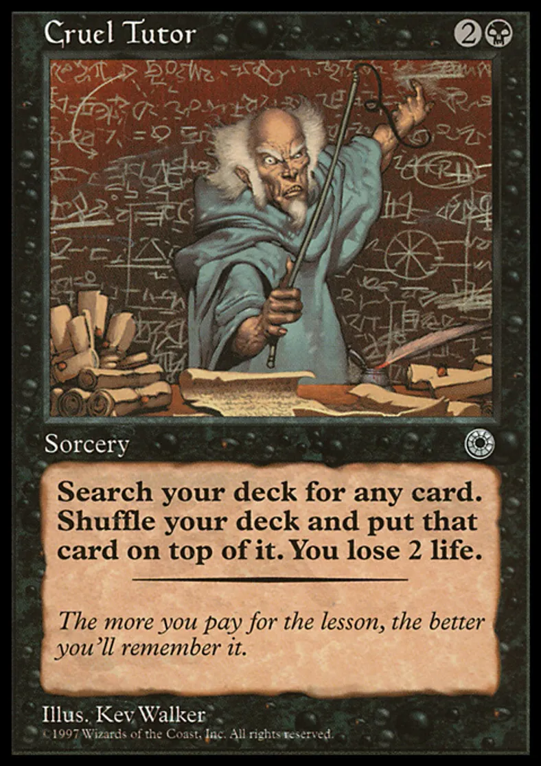 Magic: the Gathering (mtg) Rare Sorcery Cruel Tutor from Portal (POR) last updated 2026-02-24 14:44:02