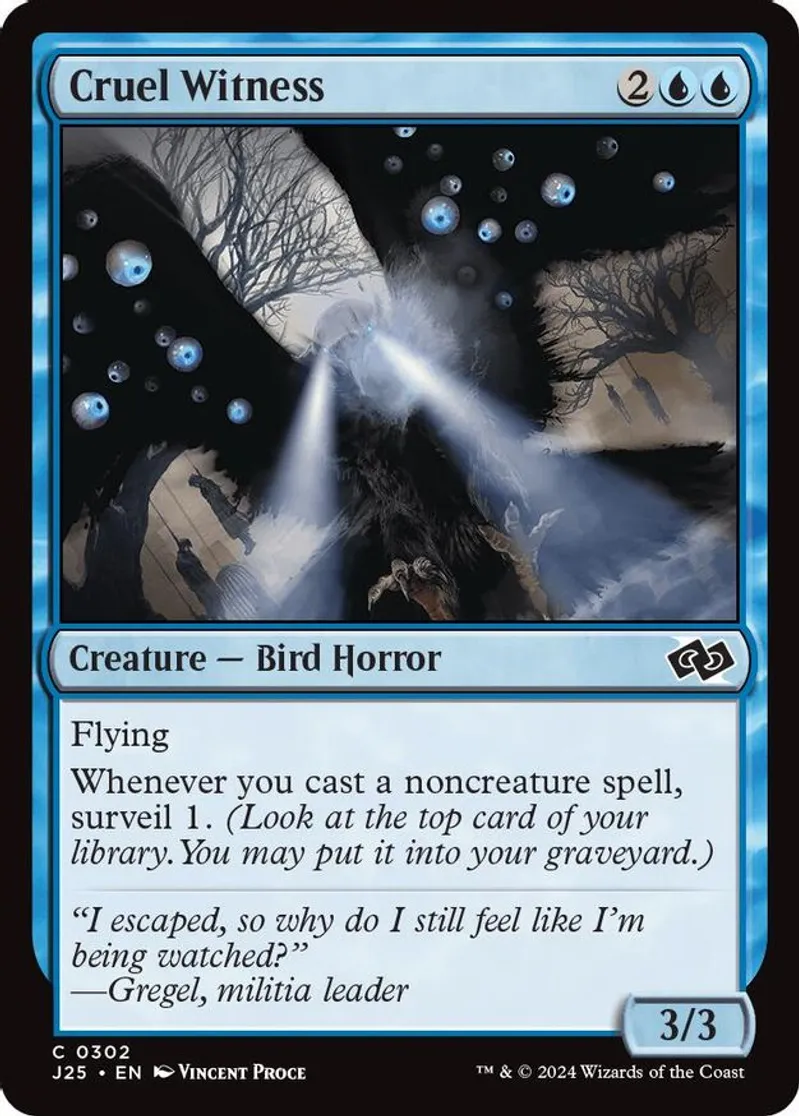 Magic: the Gathering (mtg) Common creature — bird horror Cruel Witness from Foundations Jumpstart (J25) last updated 2026-02-21 15:33:32