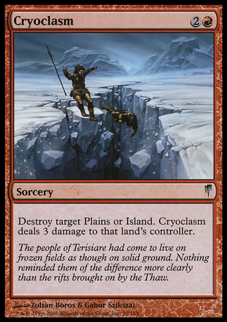 | Oracle Text | Destroy target Plains or Island. Cryoclasm deals 3 damage to that land's controller. | ||