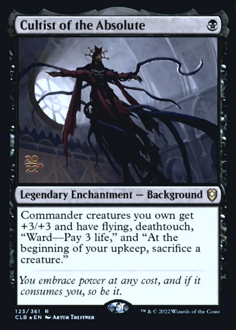 Magic: the Gathering (mtg) Rare Legendary Enchantment — Background Cultist of the Absolute from Prerelease Cards (pPRE) last updated 2026-02-24 15:38:02