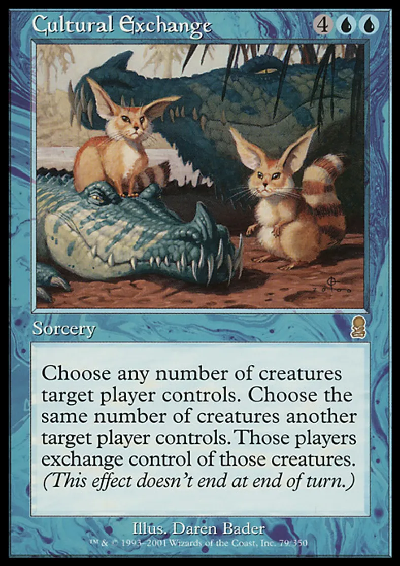 | Oracle Text | Choose any number of creatures target player controls. Choose the same number of creatures another target player controls. Those players exchange control of those creatures. (This effect lasts indefinitely.) | ||