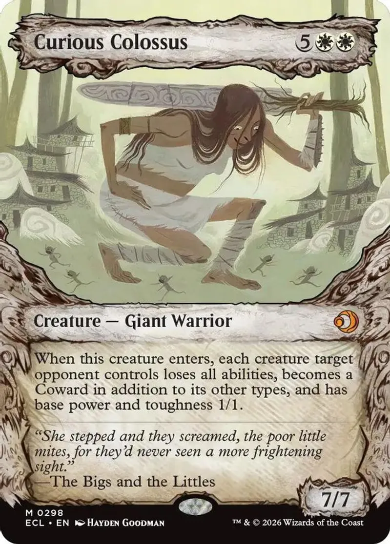 Magic: the Gathering (mtg) Mythic Rare creature — giant warrior Curious Colossus from Lorwyn Eclipsed (ECL) last updated 2026-01-11 16:15:35