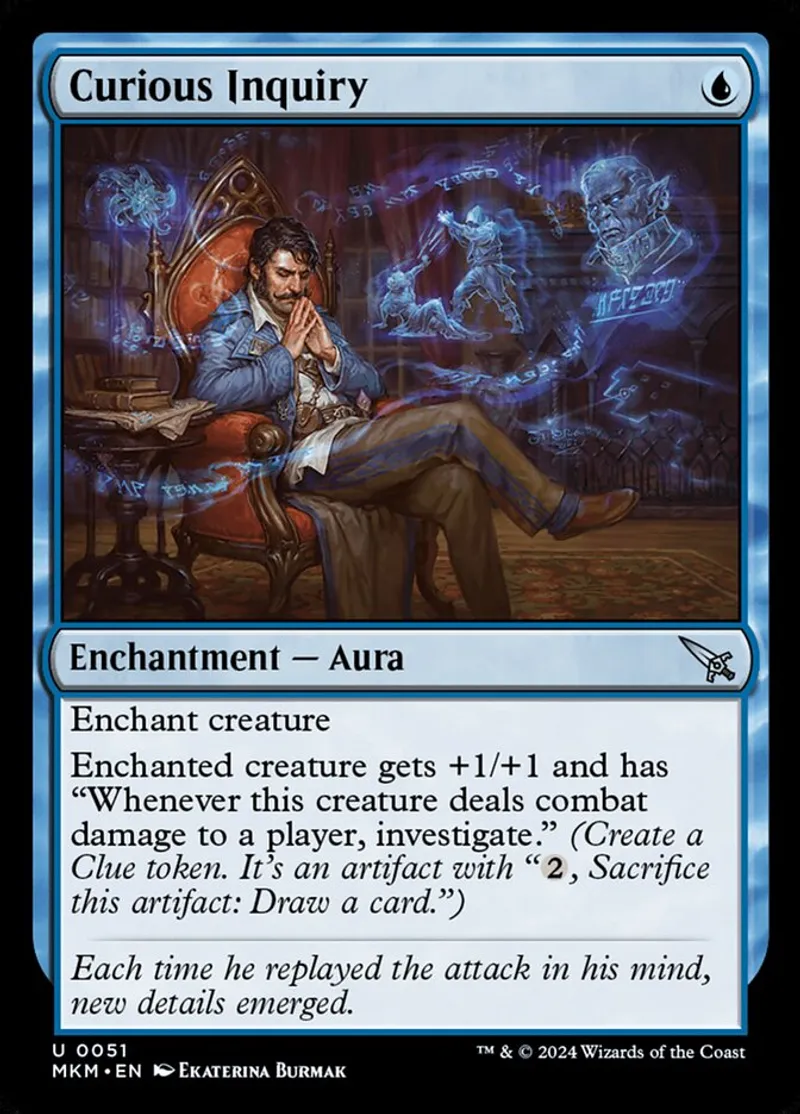 Magic: the Gathering (mtg) uncommon Enchantment — Aura Curious Inquiry from Murders at Karlov Manor (mkm) last updated 2025-12-20 15:53:01