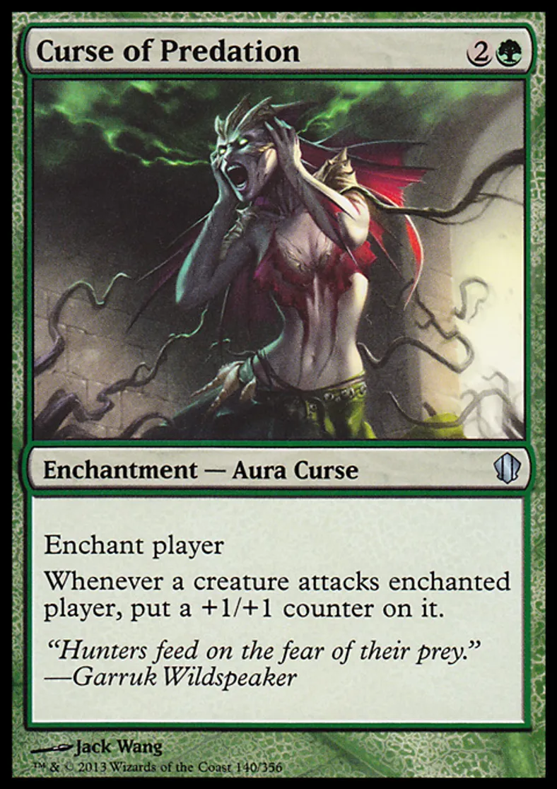 Curse of Predation is a Uncommon in the set Commander 2013 Edition.