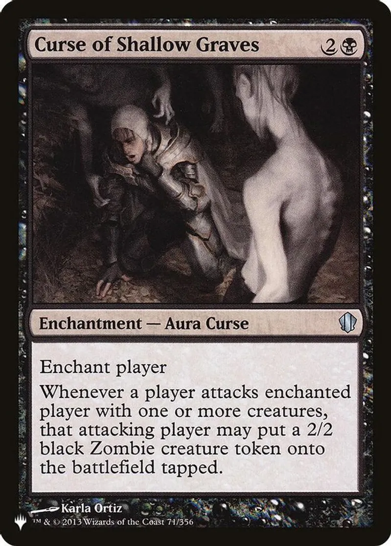 Magic: the Gathering (mtg) Uncommon enchantment — aura curse Curse of Shallow Graves from The List Reprints (PLIST) last updated 2026-04-11 15:30:34