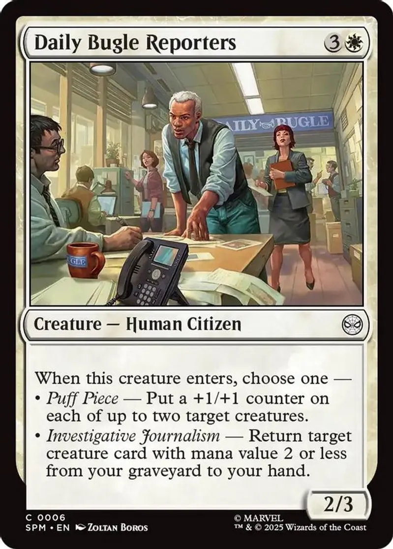 Magic: the Gathering (mtg) Common creature — human citizen Daily Bugle Reporters from Marvel's Spider-Man (SPM) last updated 2026-01-17 17:46:06