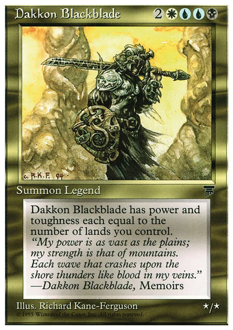 | Oracle Text | Dakkon Blackblade's power and toughness are each equal to the number of lands you control. | ||