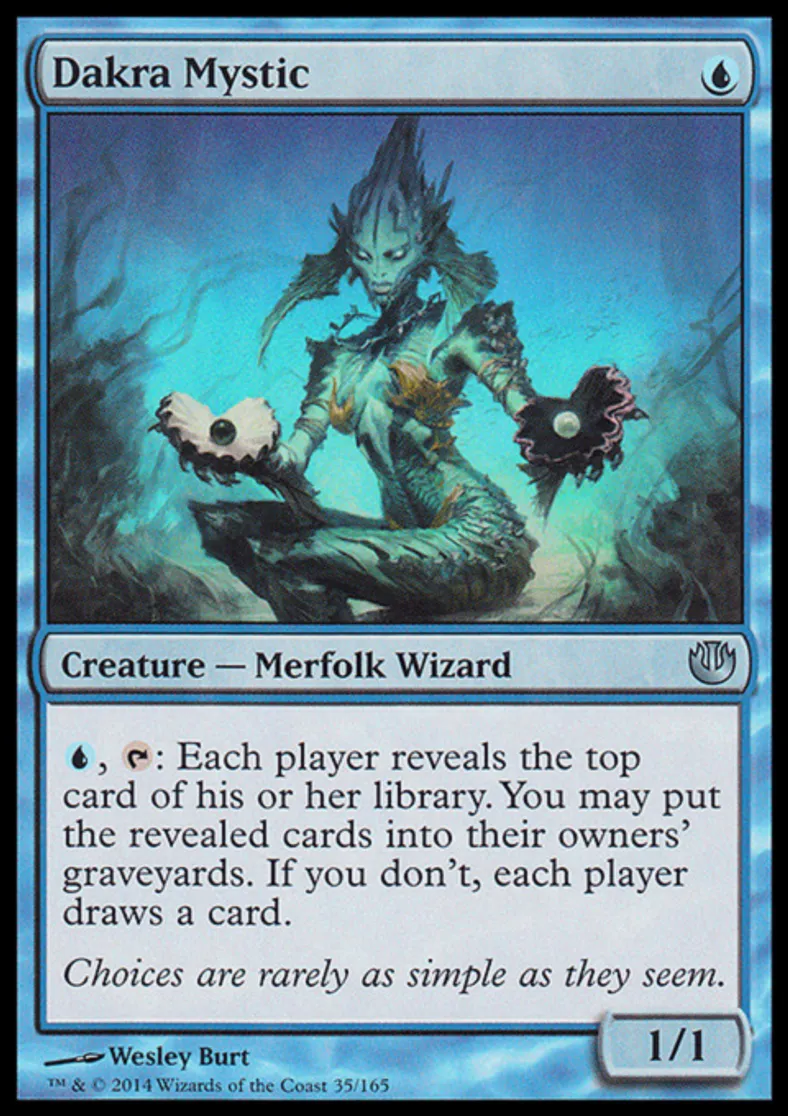 Magic: the Gathering (mtg) Uncommon Creature - Merfolk Wizard Dakra Mystic from Journey into Nyx (JOU) last updated 2026-02-24 16:00:07
