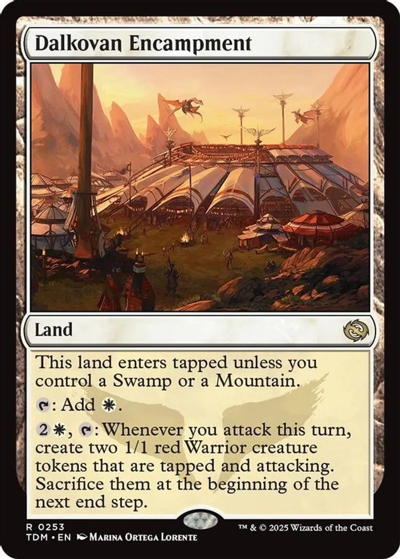Magic: the Gathering (mtg) Rare land Dalkovan Encampment from Tarkir: Dragonstorm (TDM) last updated 2025-12-13 15:06:02