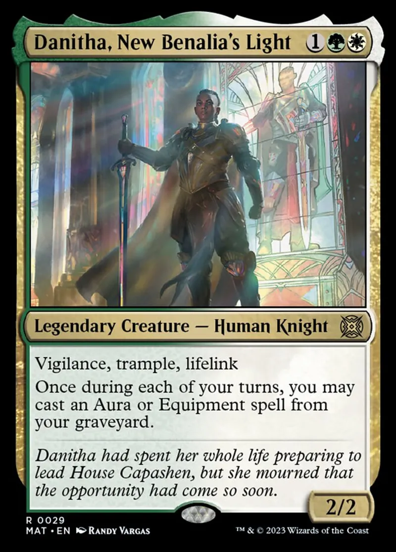 Magic: the Gathering (mtg) rare Legendary Creature — Human Knight Danitha, New Benalia's Light from March of the Machine: The Aftermath (mat) last updated 2026-02-24 14:56:32