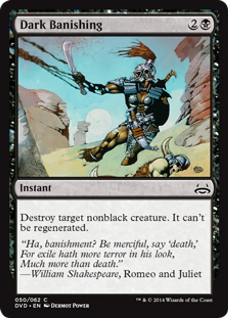 Dark Banishing is a Common in the set Duel Decks: Anthology.