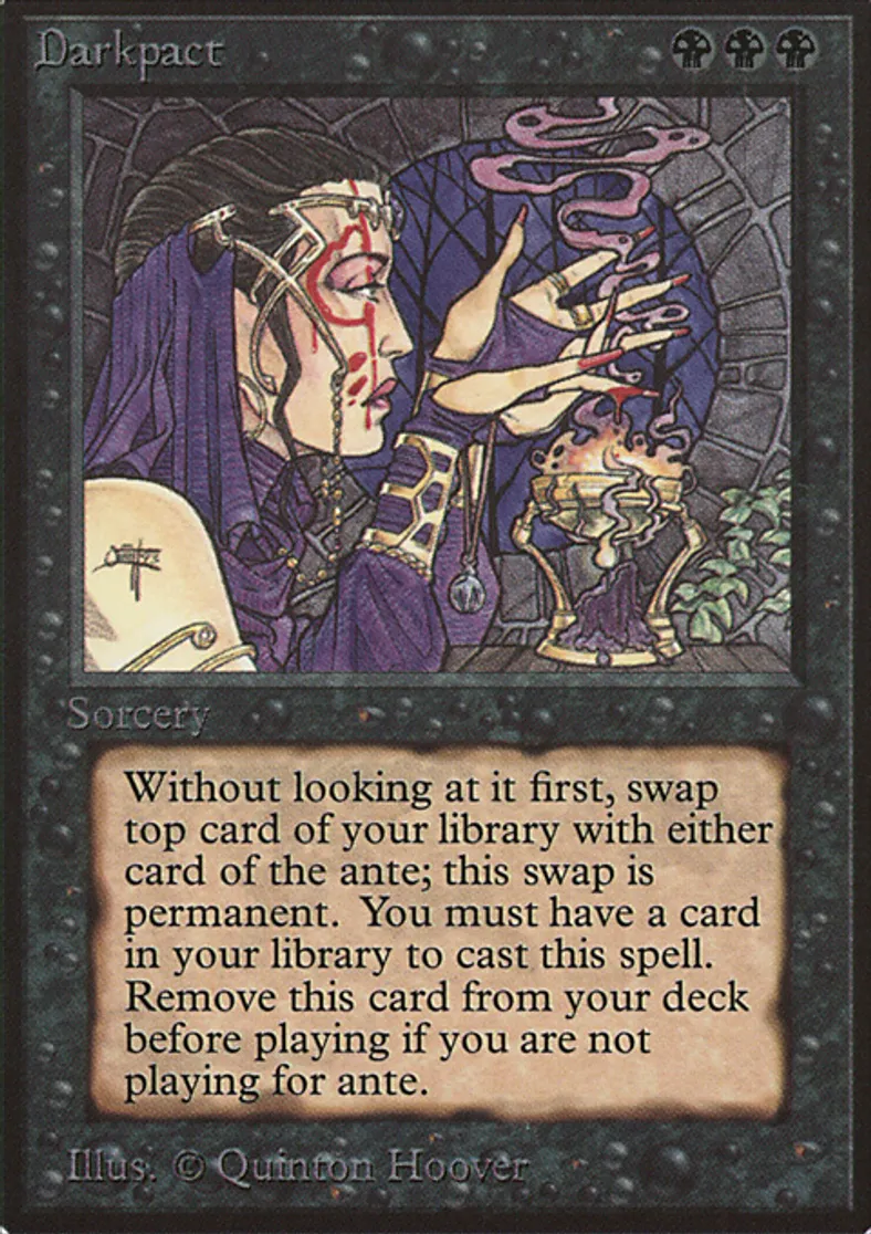 | Oracle Text | Remove Darkpact from your deck before playing if you're not playing for ante. You own target card in the ante. Exchange that card with the top card of your library. | ||