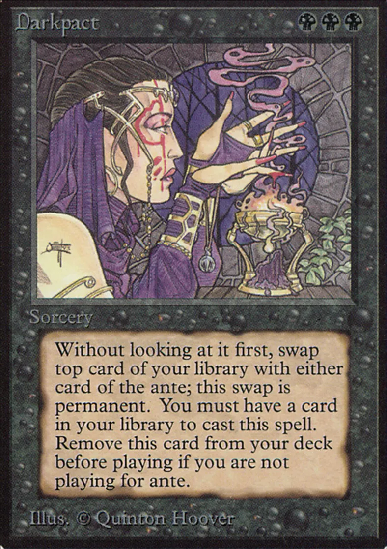 | Oracle Text | Remove Darkpact from your deck before playing if you're not playing for ante. You own target card in the ante. Exchange that card with the top card of your library. | ||
