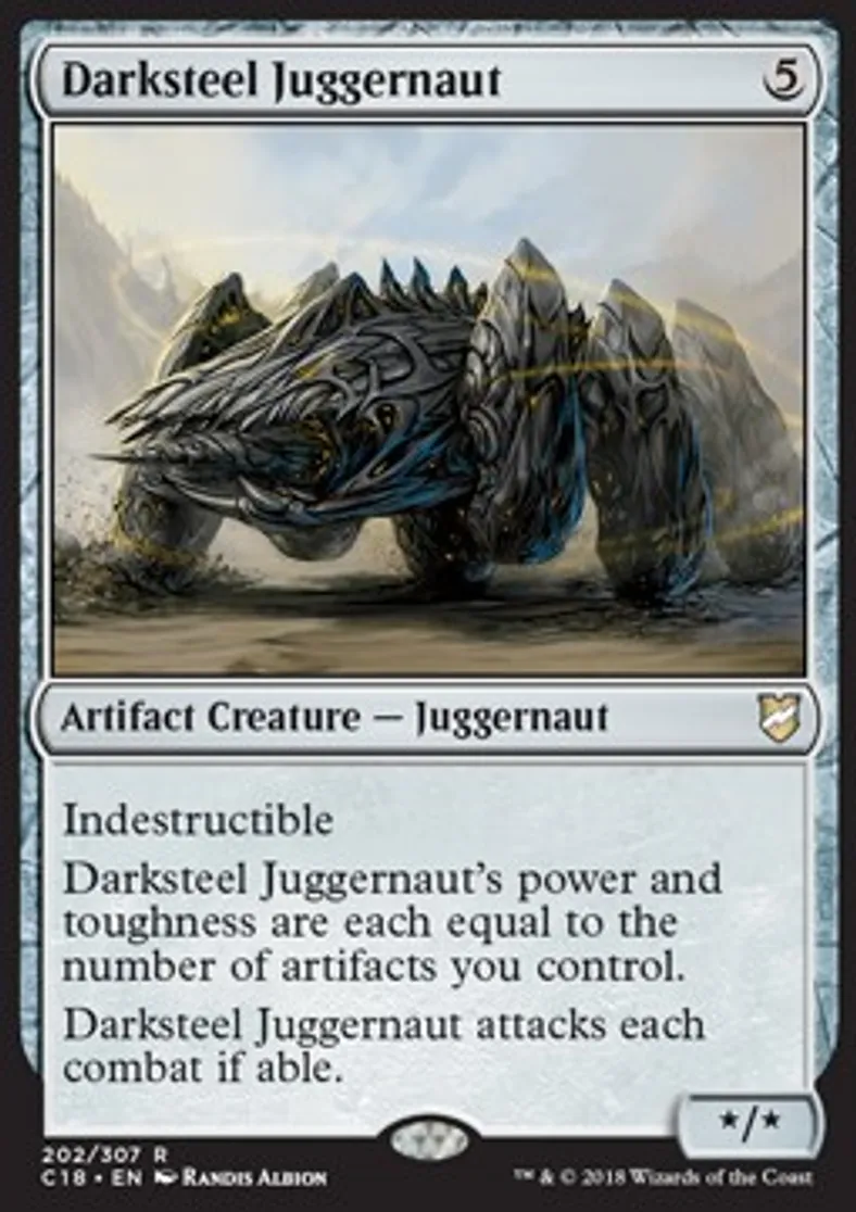 | Oracle Text | Indestructible Darksteel Juggernaut's power and toughness are each equal to the number of artifacts you control. Darksteel Juggernaut attacks each combat if able. | ||
