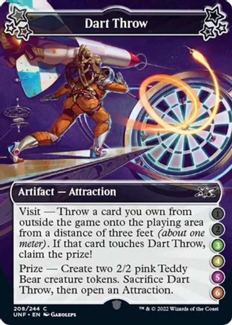 Magic: the Gathering (mtg) Common Artifact — Attraction Dart Throw from Unfinity (UNF) last updated 2026-02-21 16:13:32