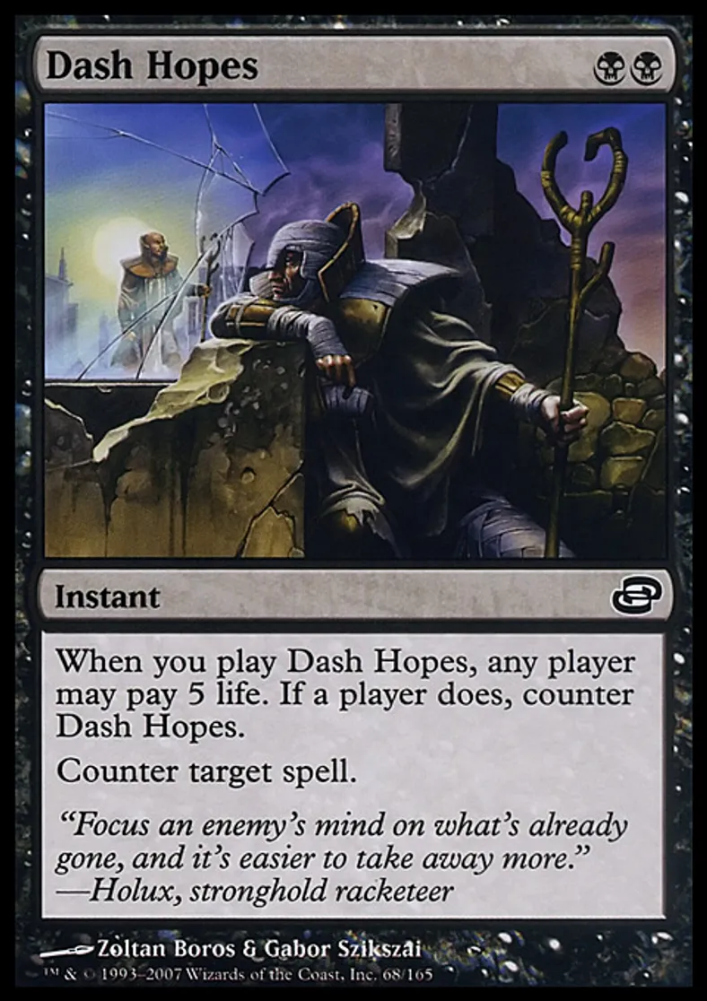 | Oracle Text | When you cast Dash Hopes, any player may pay 5 life. If a player does, counter Dash Hopes. Counter target spell. | ||