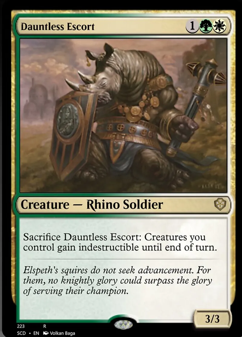 Magic: the Gathering (mtg) rare Creature — Rhino Soldier Dauntless Escort from Starter Commander Decks (scd) last updated 2026-02-21 16:19:33