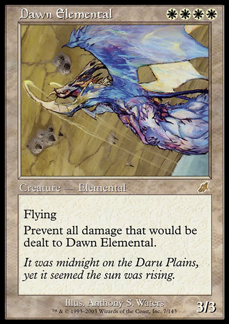 | Oracle Text | Flying Prevent all damage that would be dealt to Dawn Elemental. | ||