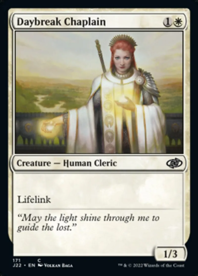 Magic: the Gathering (mtg) common Creature — Human Cleric Daybreak Chaplain from Jumpstart 2022 (j22) last updated 2026-02-21 16:17:02