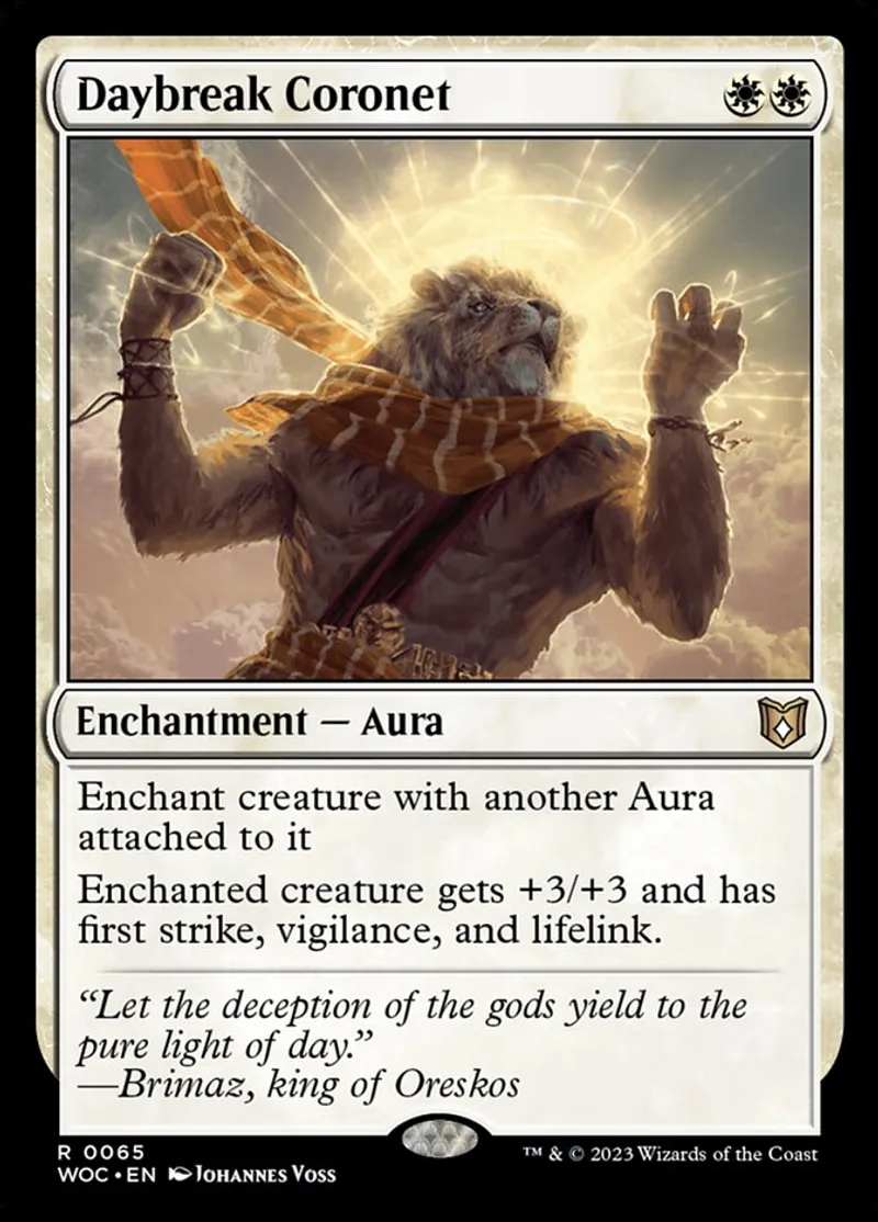 Magic: the Gathering (mtg) rare Enchantment — Aura Daybreak Coronet from Wilds of Eldraine Commander (woc) last updated 2026-02-24 14:57:36