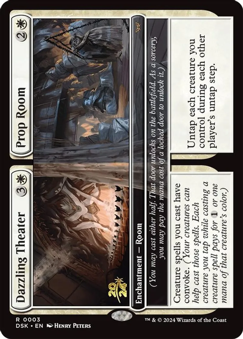 Magic: the Gathering (mtg) Rare enchantment — room Dazzling Theater // Prop Room from Prerelease Cards (pPRE) last updated 2025-12-13 15:29:01
