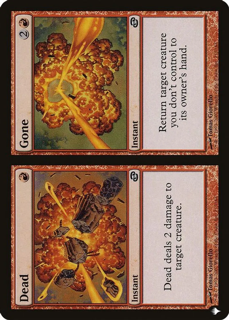 dead deals 2 damage to target creature. // gone return target creature you don't control to its owner's hand. | ||