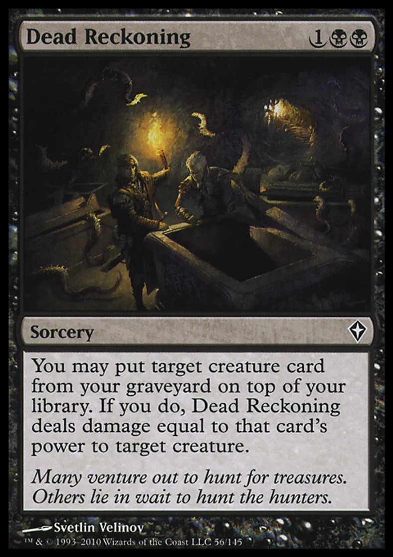 | Oracle Text | You may put target creature card from your graveyard on top of your library. If you do, Dead Reckoning deals damage equal to that card's power to target creature. | ||