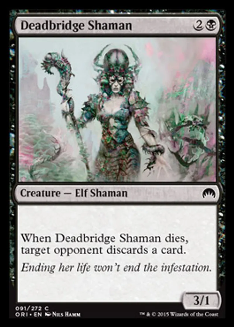 | Oracle Text | When Deadbridge Shaman dies, target opponent discards a card. | ||