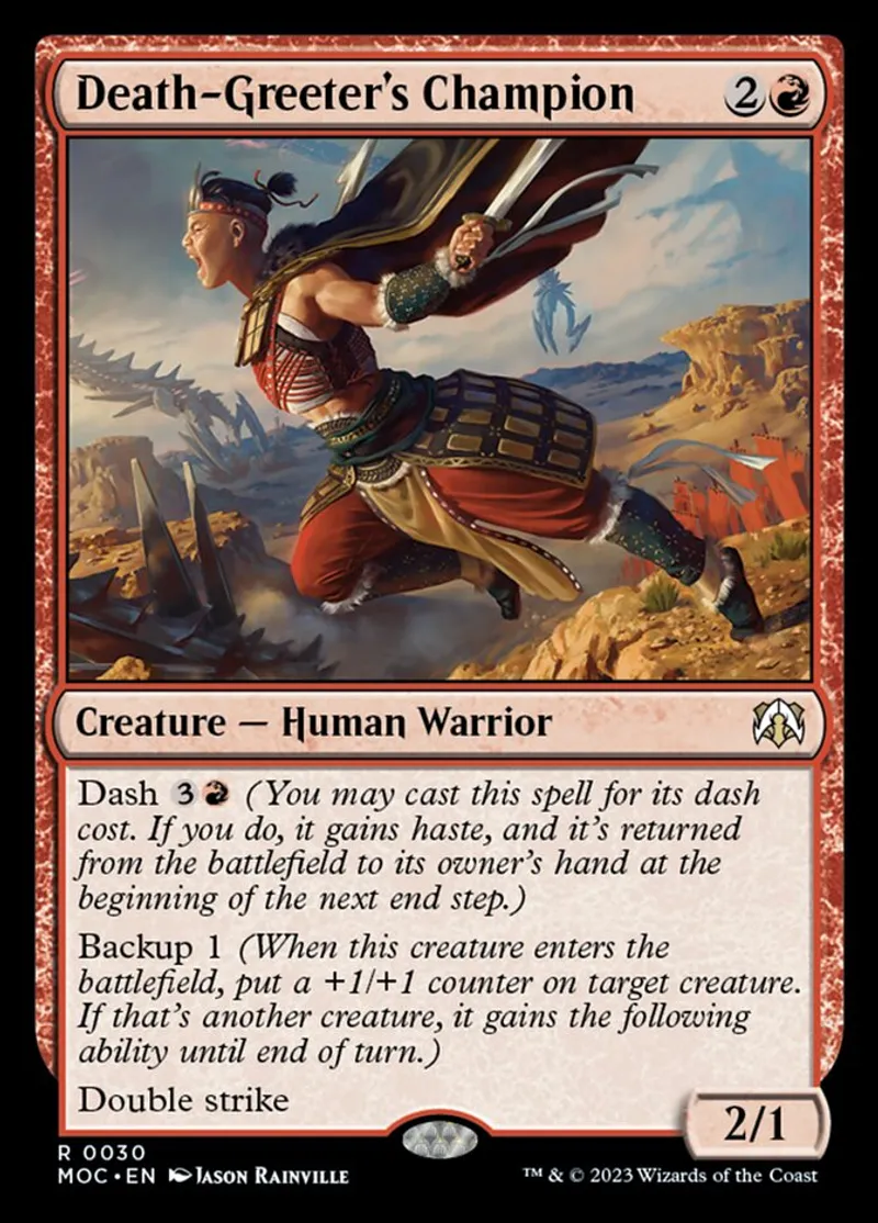 Magic: the Gathering (mtg) rare Creature — Human Warrior Death-Greeter's Champion from March of the Machine Commander (moc) last updated 2026-02-24 15:42:02