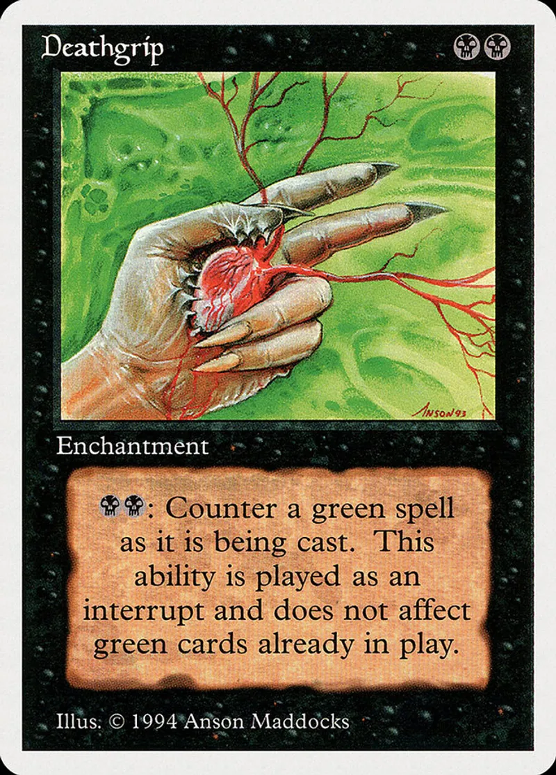 Magic: the Gathering (mtg) uncommon Enchantment Deathgrip from Summer Magic (sum) last updated