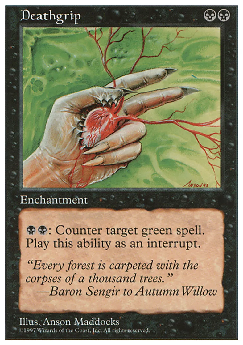 Magic: the Gathering (mtg) Uncommon Enchantment Deathgrip from Fifth Edition (5ED) last updated 2026-02-24 15:47:36