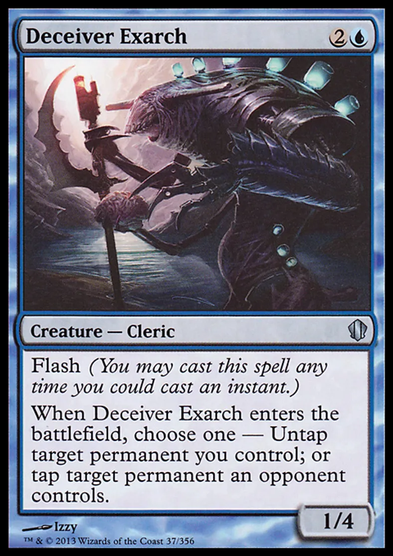 | Oracle Text | Flash (You may cast this spell any time you could cast an instant.) When Deceiver Exarch enters the battlefield, choose one — Untap target permanent you control; or tap target permanent an opponent controls. | ||