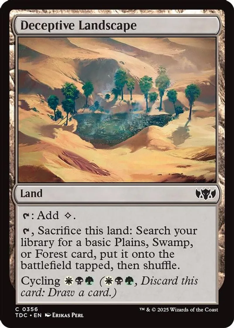 Magic: the Gathering (mtg) Common land Deceptive Landscape from Commander: Tarkir: Dragonstorm (TDC) last updated 2025-12-13 15:07:01