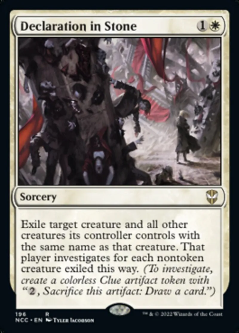 Declaration in Stone is a rare in the set New Capenna Commander.
