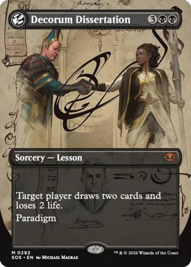 Decorum Dissertation (Borderless) is a Mythic Rare in the set Secrets of Strixhaven.