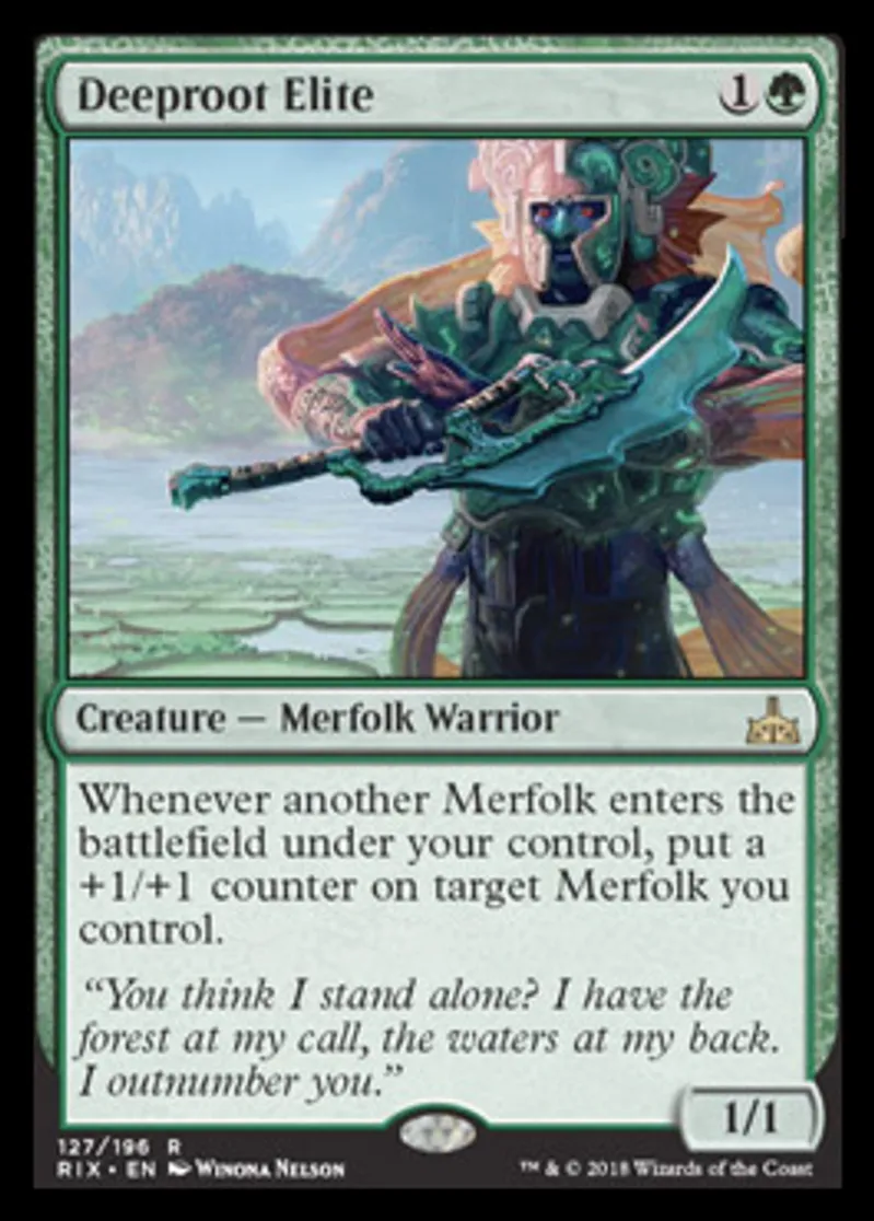 Magic: the Gathering (mtg) Rare Creature - Merfolk Warrior Deeproot Elite from Rivals of Ixalan (RIX) last updated 2026-02-25 16:06:02