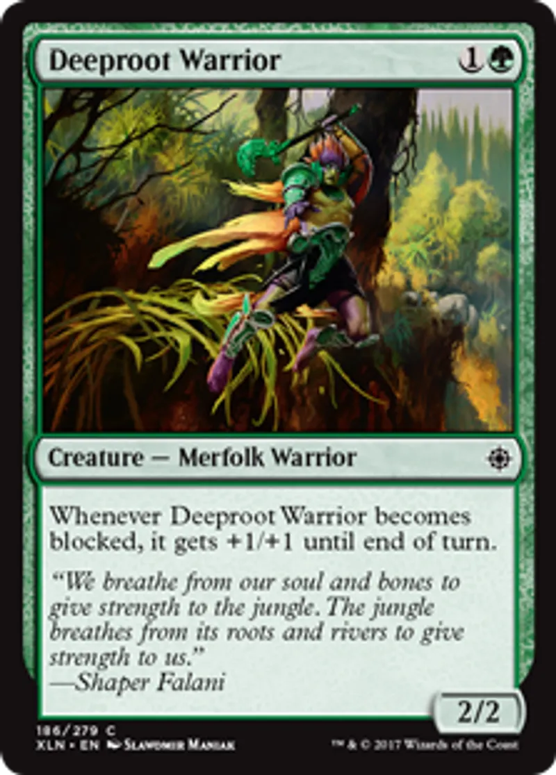 Magic: the Gathering (mtg) Common Creature - Merfolk Warrior Deeproot Warrior from Ixalan (XLN) last updated 2026-02-21 16:47:36