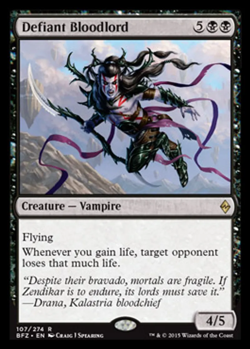 Magic: the Gathering (mtg) Rare Creature - Vampire Defiant Bloodlord from Battle for Zendikar (BFZ) last updated 2026-02-21 17:21:32