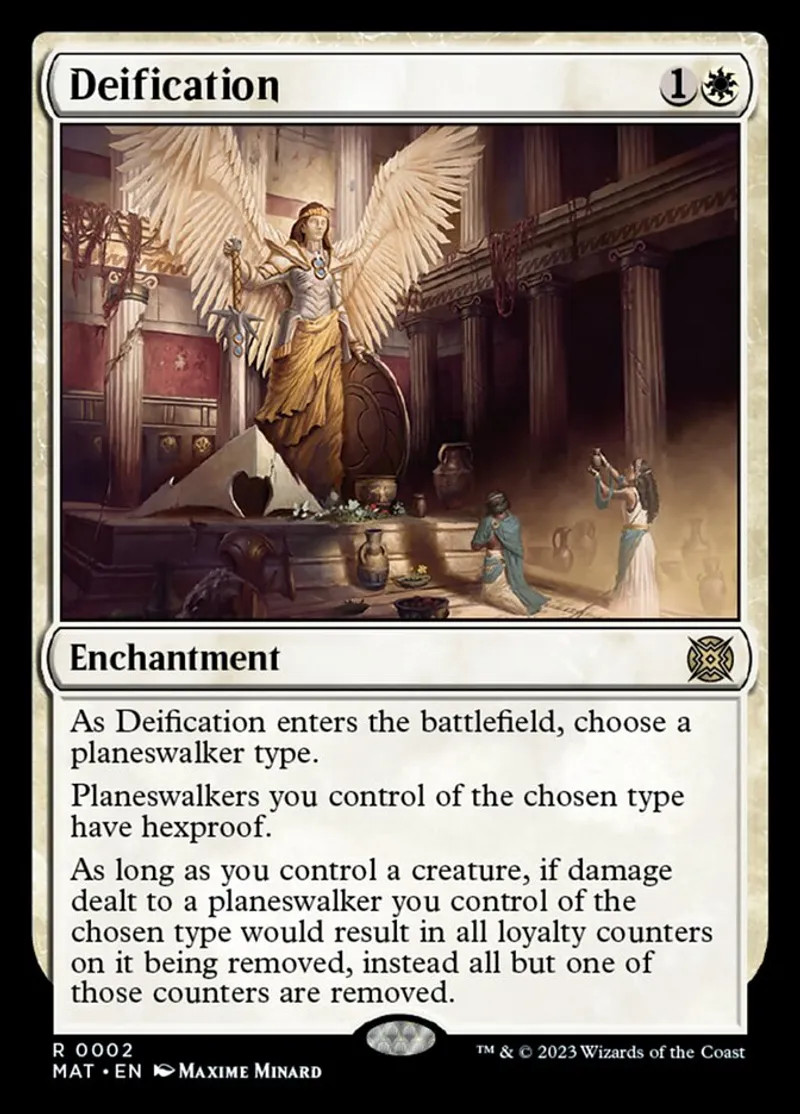 | Oracle Text | As Deification enters the battlefield, choose a planeswalker type.