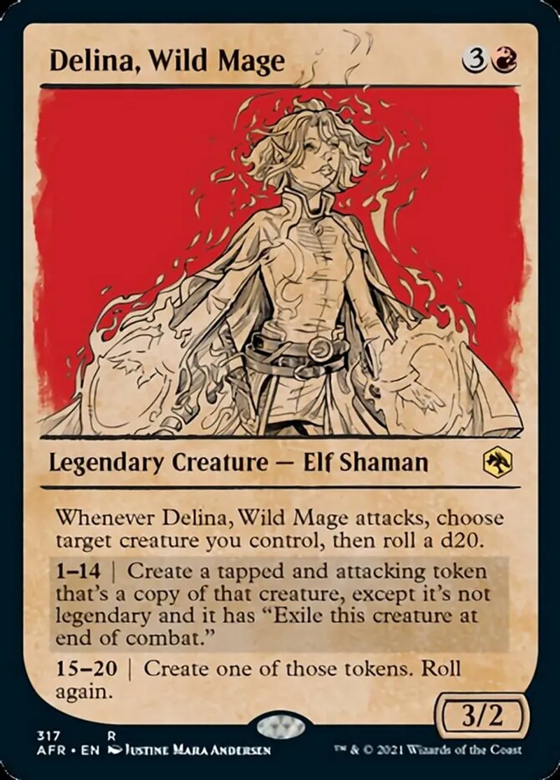 | Oracle Text | Whenever Delina, Wild Mage attacks, choose target creature you control, then roll a d20.