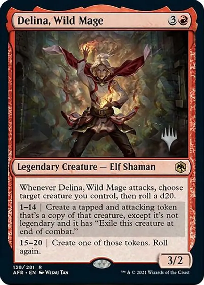 | Oracle Text | Whenever Delina, Wild Mage attacks, choose target creature you control, then roll a d20.