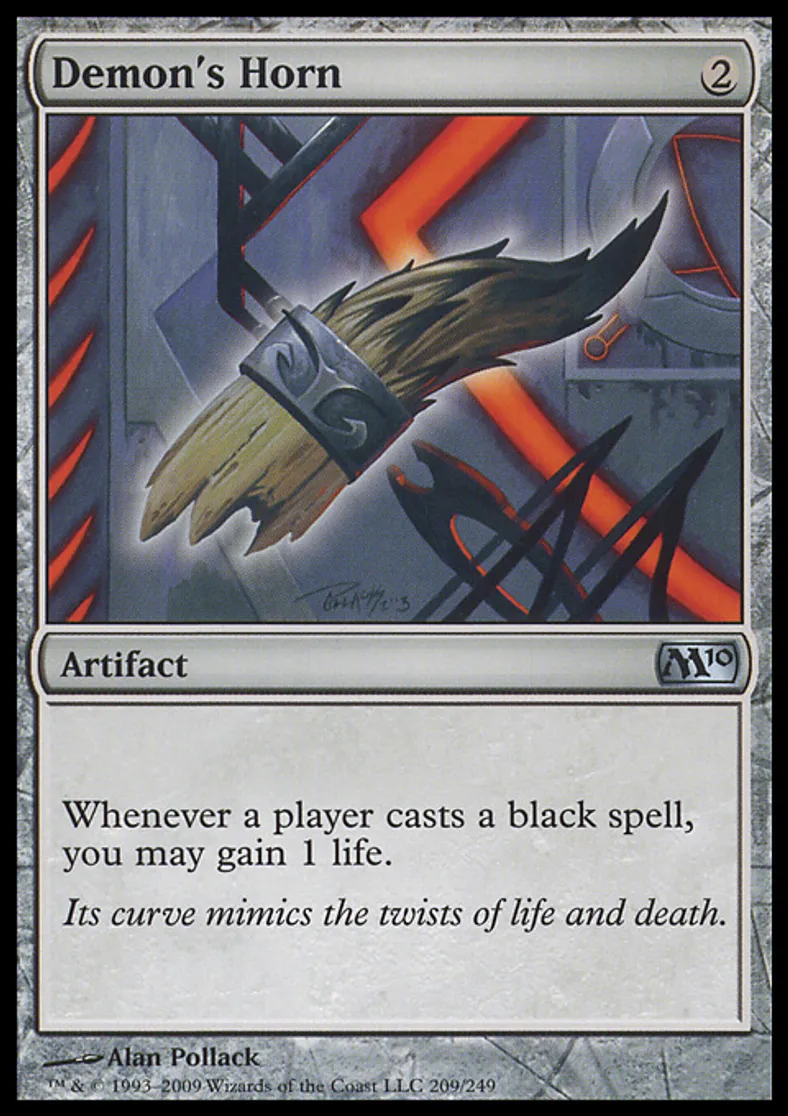 Magic: the Gathering (mtg) Uncommon Artifact Demon's Horn from Magic 2010 (M10) last updated 2026-02-21 17:48:06