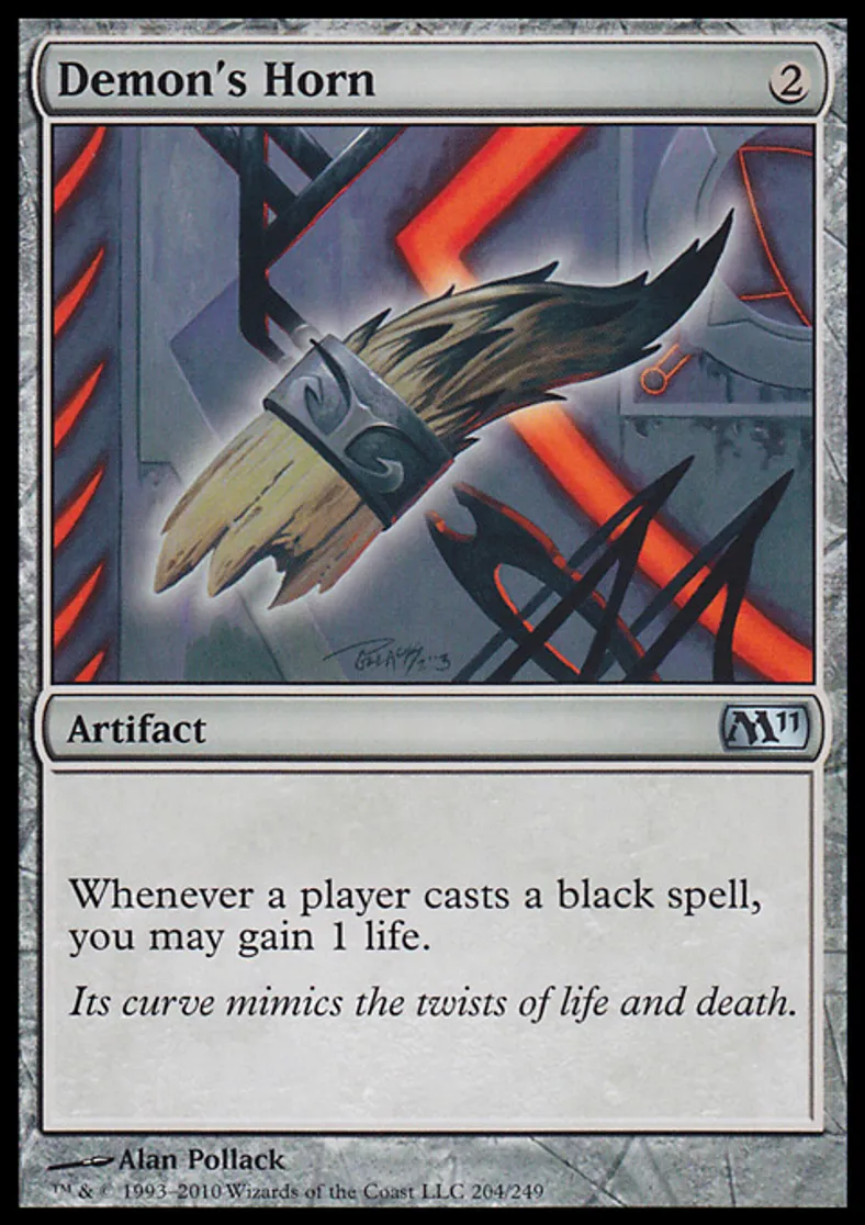 Magic: the Gathering (mtg) Uncommon Artifact Demon's Horn from Magic 2011 (M11) last updated 2026-02-25 15:57:06