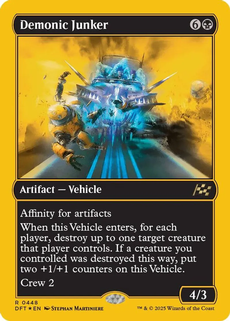 Magic: the Gathering (mtg) Rare artifact — vehicle Demonic Junker from Aetherdrift (DFT) last updated 2025-12-13 15:35:36