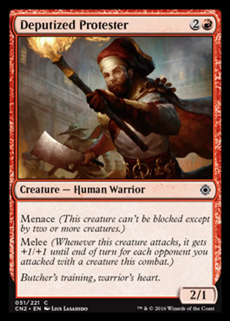 Magic: the Gathering (mtg) Common Creature - Human Warrior Deputized Protester from Conspiracy: Take the Crown (CN2) last updated 2026-02-21 17:25:36