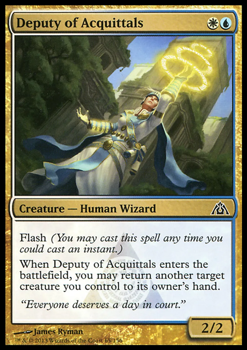 Deputy of Acquittals is a Common in the set Dragon's Maze.